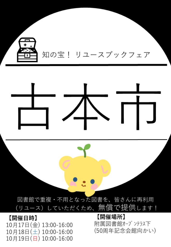 図書館で重複・不用となった図書を、皆さんに再利用(リユース)していただくため、無償で提供します!